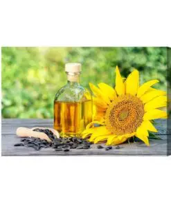 Leinwandbild Sonnenblumenöl Mit Blüten