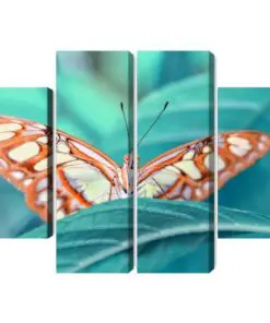 Mehrteiliges Bild Schmetterling Auf Einem Blatt Im Makromaßstab