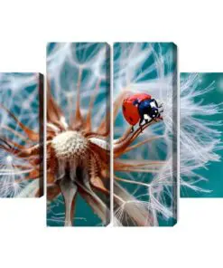 Mehrteiliges Bild Marienkäfer Auf Einem Löwenzahn Im Makromaßstab