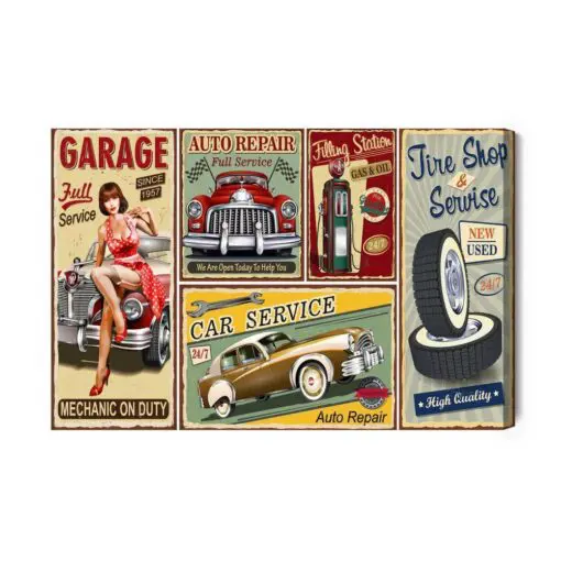 Leinwandbild Collage Aus Alten Platten Mit Retro-Autos