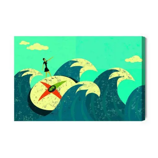 Leinwandbild Frau Auf Dem Zifferblatt Zwischen Vintage-Wellen