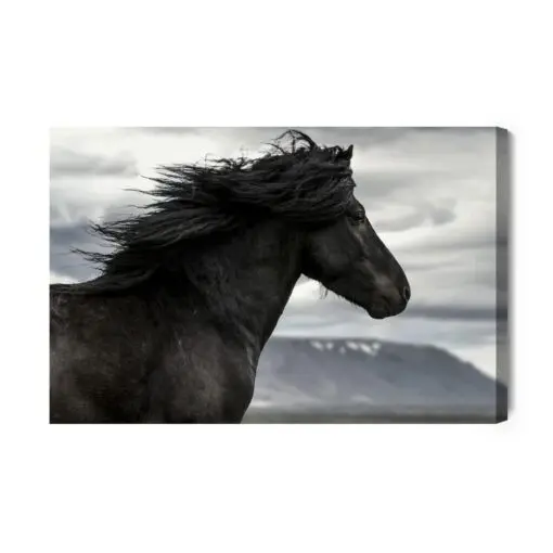 Leinwandbild Schwarzes Pferd Auf Einem Hintergrund Von Wolken