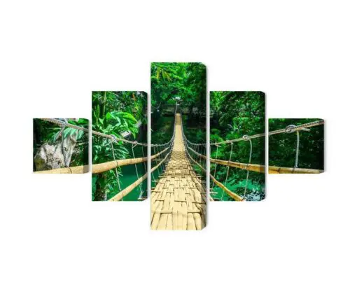 Mehrteiliges Bild Bambusbrücke In Einem Tropischen Wald