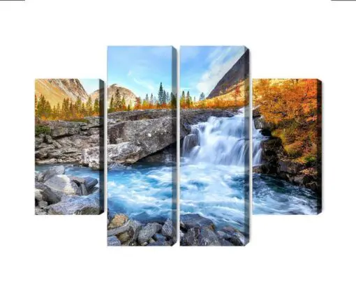 Mehrteiliges Bild Herbstlandschaft Mit Wasserfall