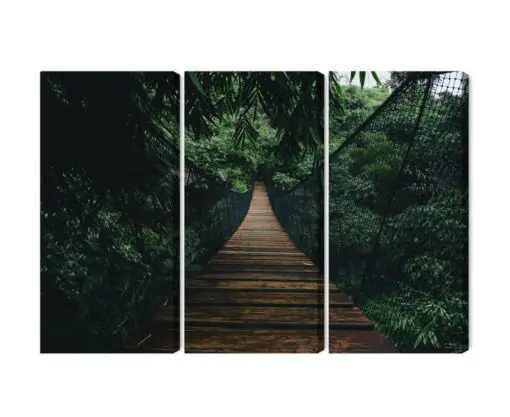 Mehrteiliges Bild Hölzerne Hängebrücke Im Wald