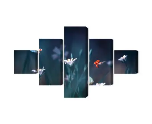 Mehrteiliges Bild Marienkäfer Und Wildblumen Im Makromaßstab