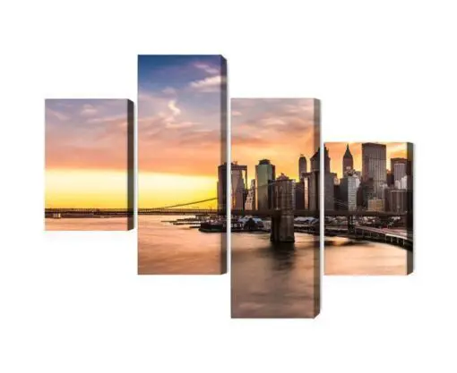 Mehrteiliges Bild Panorama Der Brooklyn Bridge Bei Sonnenuntergang
