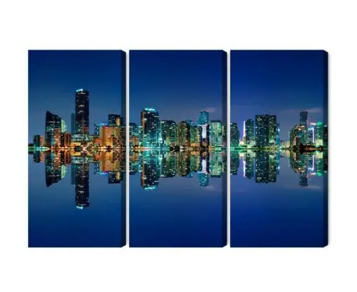 Mehrteiliges Bild Panorama Von Miami Bei Nacht