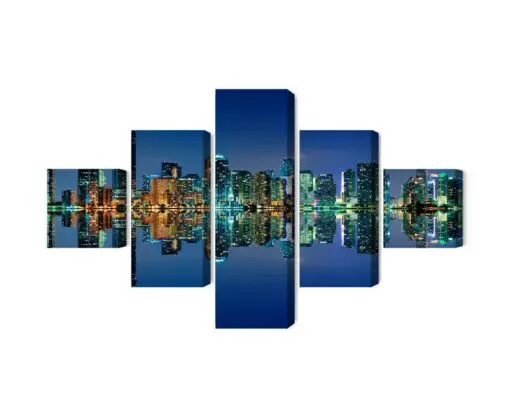 Mehrteiliges Bild Panorama Von Miami Bei Nacht