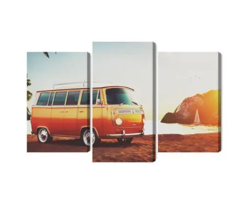 Mehrteiliges Bild Retro-Auto Am Strand