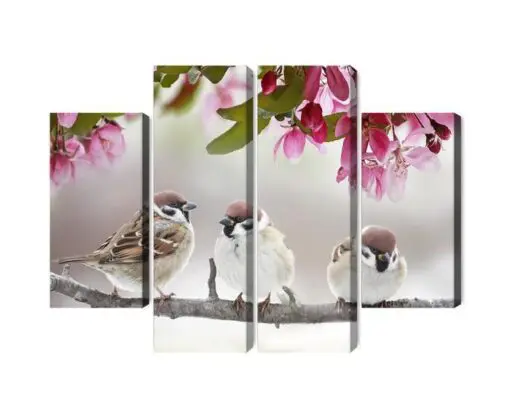 Mehrteiliges Bild Spatzen Zwischen Blumen