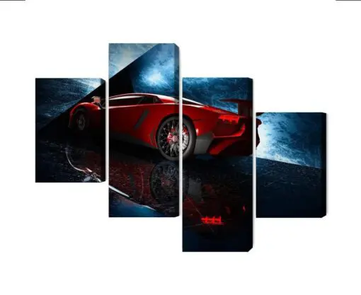 Mehrteiliges Bild Sportwagen Auf Einem Abstrakten Hintergrund