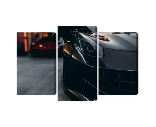Mehrteiliges Bild Vorne Ein Schwarzer Sportwagen