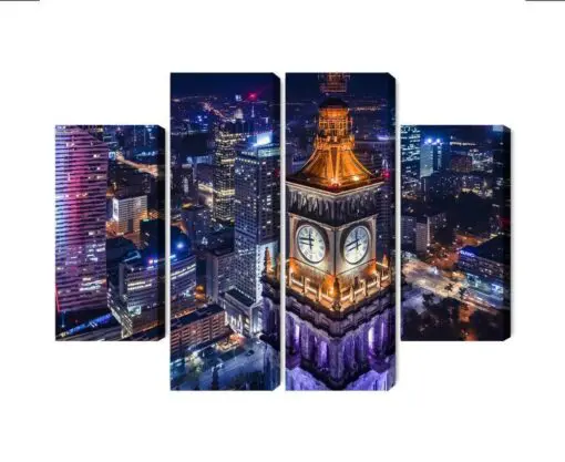 Mehrteiliges Bild Warschau-Panorama Bei Nacht