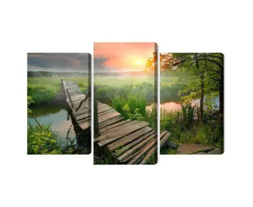 Mehrteiliges Bild Wiese Im Morgengrauen