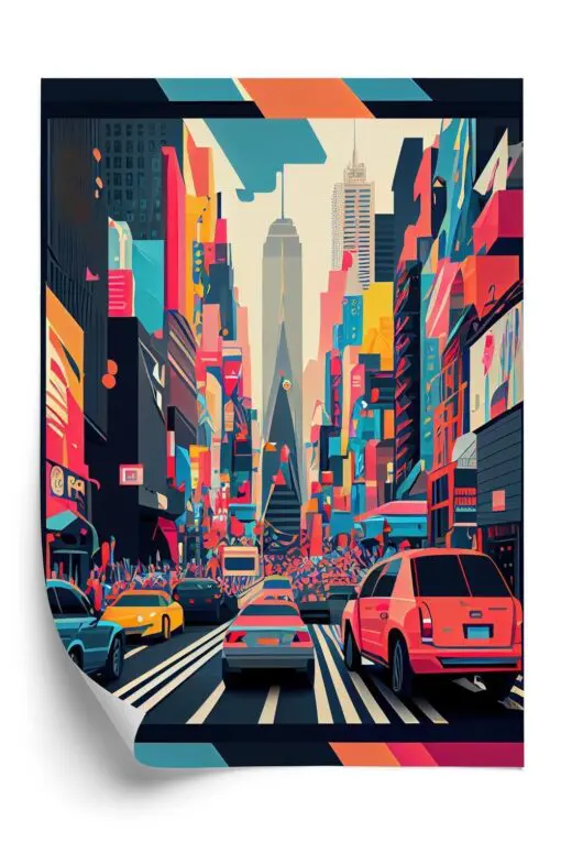 Poster Bunte Autos Auf Der Straße Von New York Abstraktion