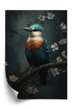 Poster Bunter Blauer Vogel Auf Einem Ast