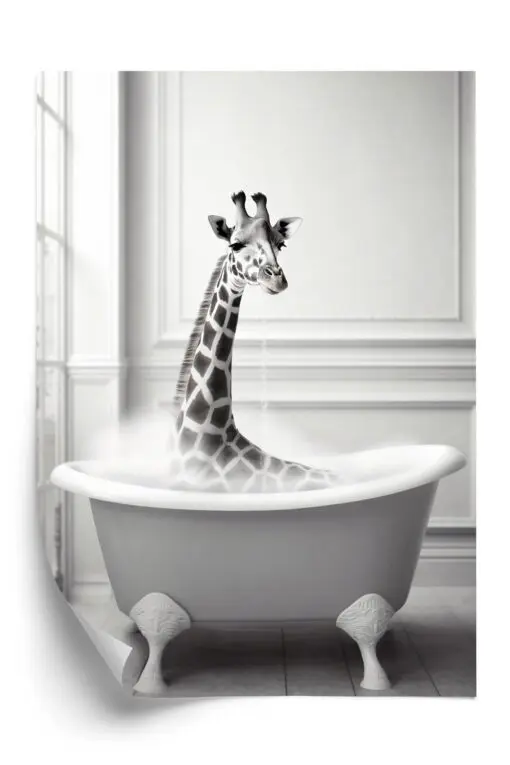 Poster Surreale Illustration Mit Einer Giraffe In Einer Badewanne
