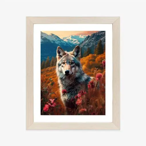 Poster Wolf In Der Natur In Einem Gebirgstal Zwischen Blumen