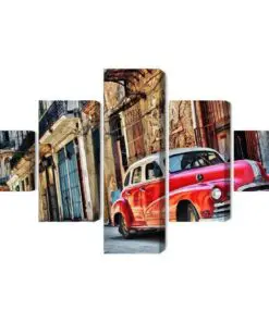 Mehrteiliges Bild Amerikanisches Oldtimer In Kuba