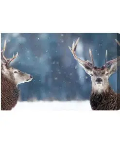 Leinwandbild Zwei Hirsche Im Winterwald